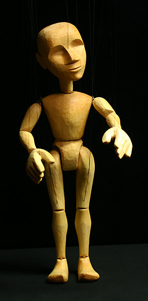 von holzgeschnitzten Marionetten, Klappmaulfiguren oder anderen Figurenarten aus verschiedenen Materialien.